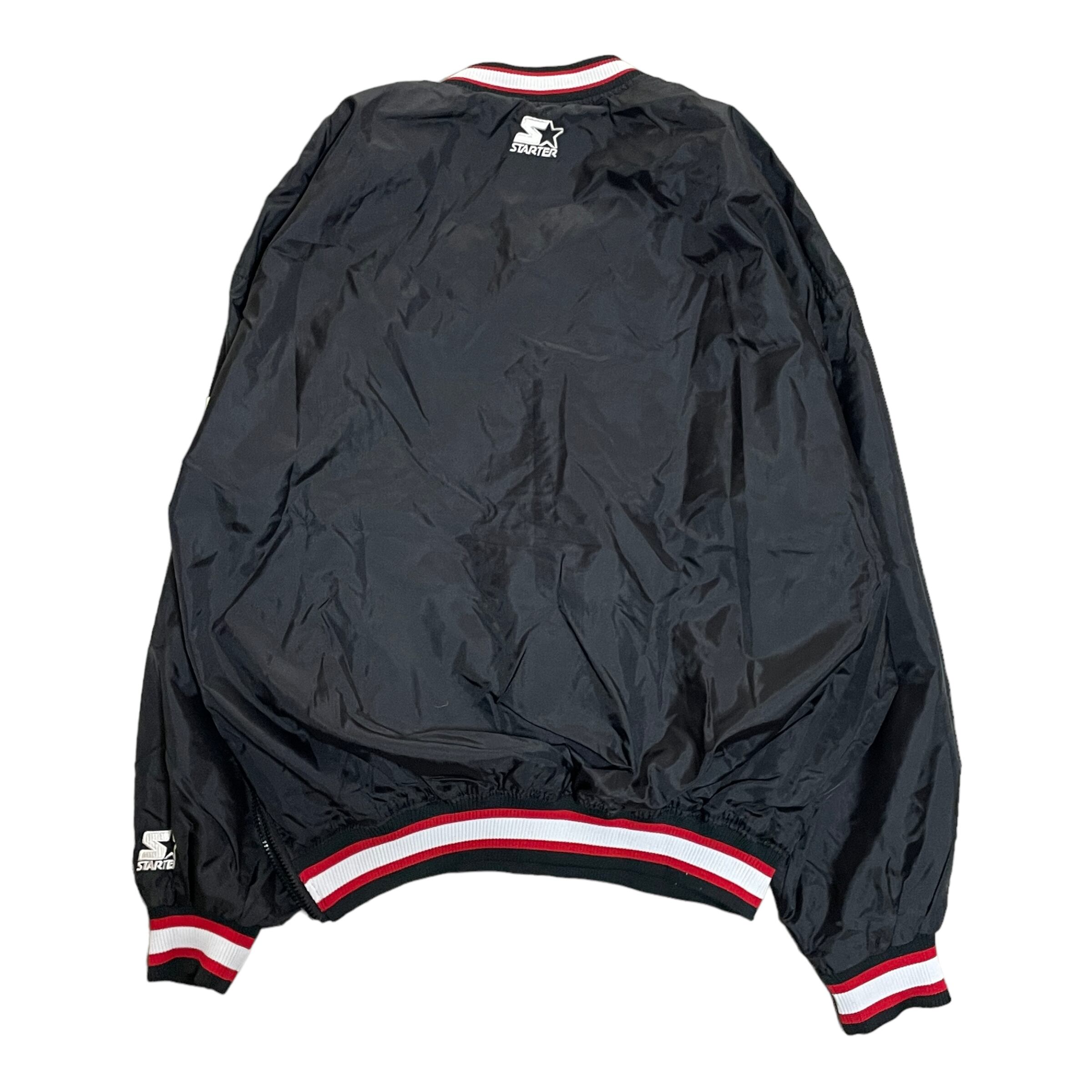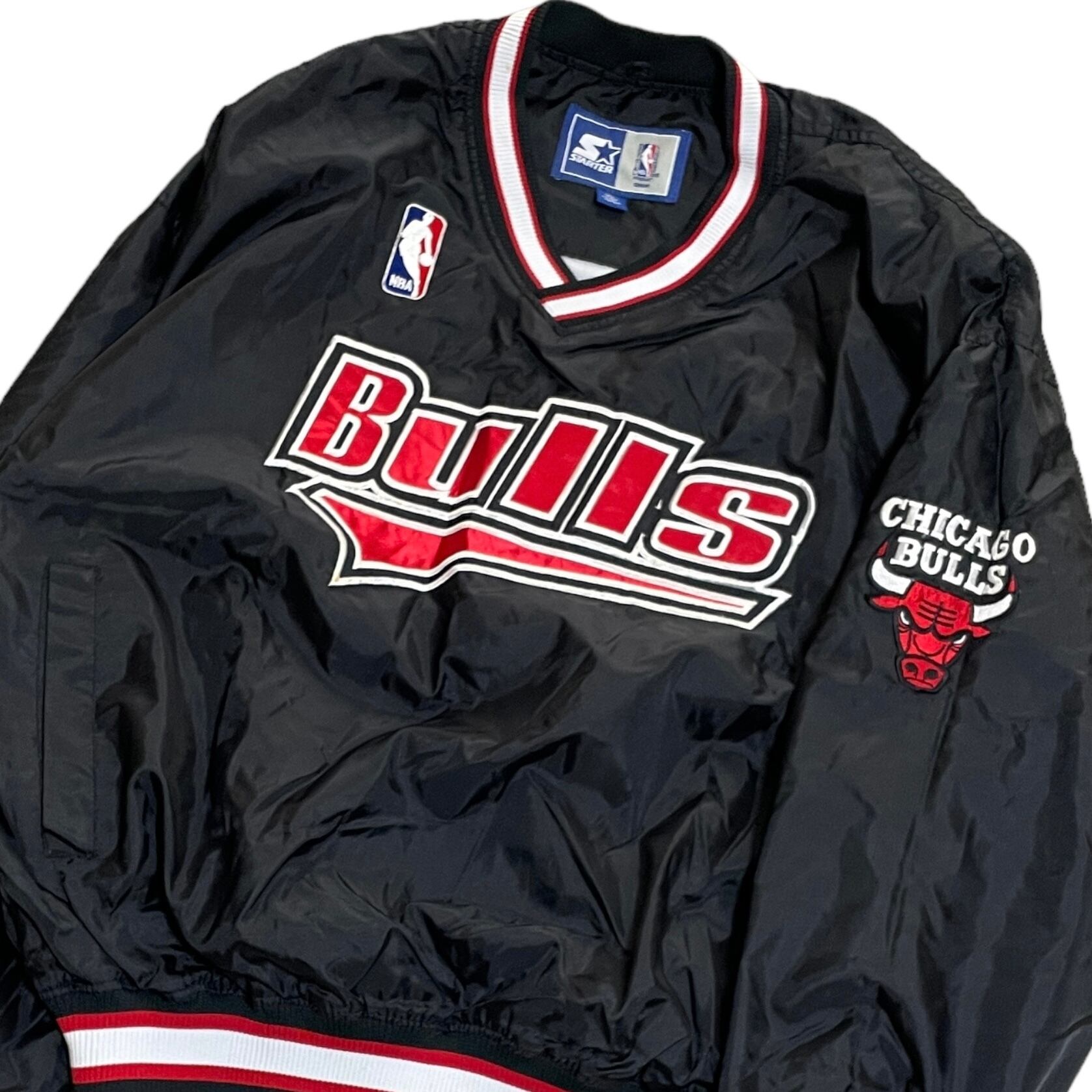 90's STARTER スターター NBA シカゴ ブルズ CHICAGO BULLS ナイロンプルオーバー 黒/ブラック 赤 XLサイズ ナイロンジャケット