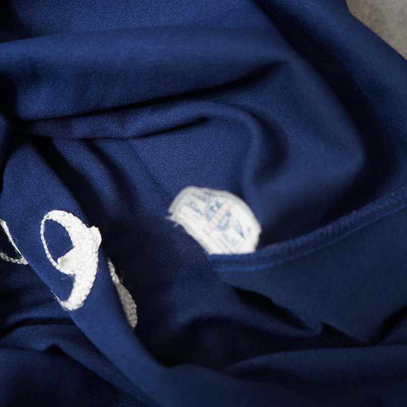 70's 米国製 king louie キングルイ ボウリングシャツ/ボーリングシャツ ネイビー 白 Mサイズ チェーンステッチ
