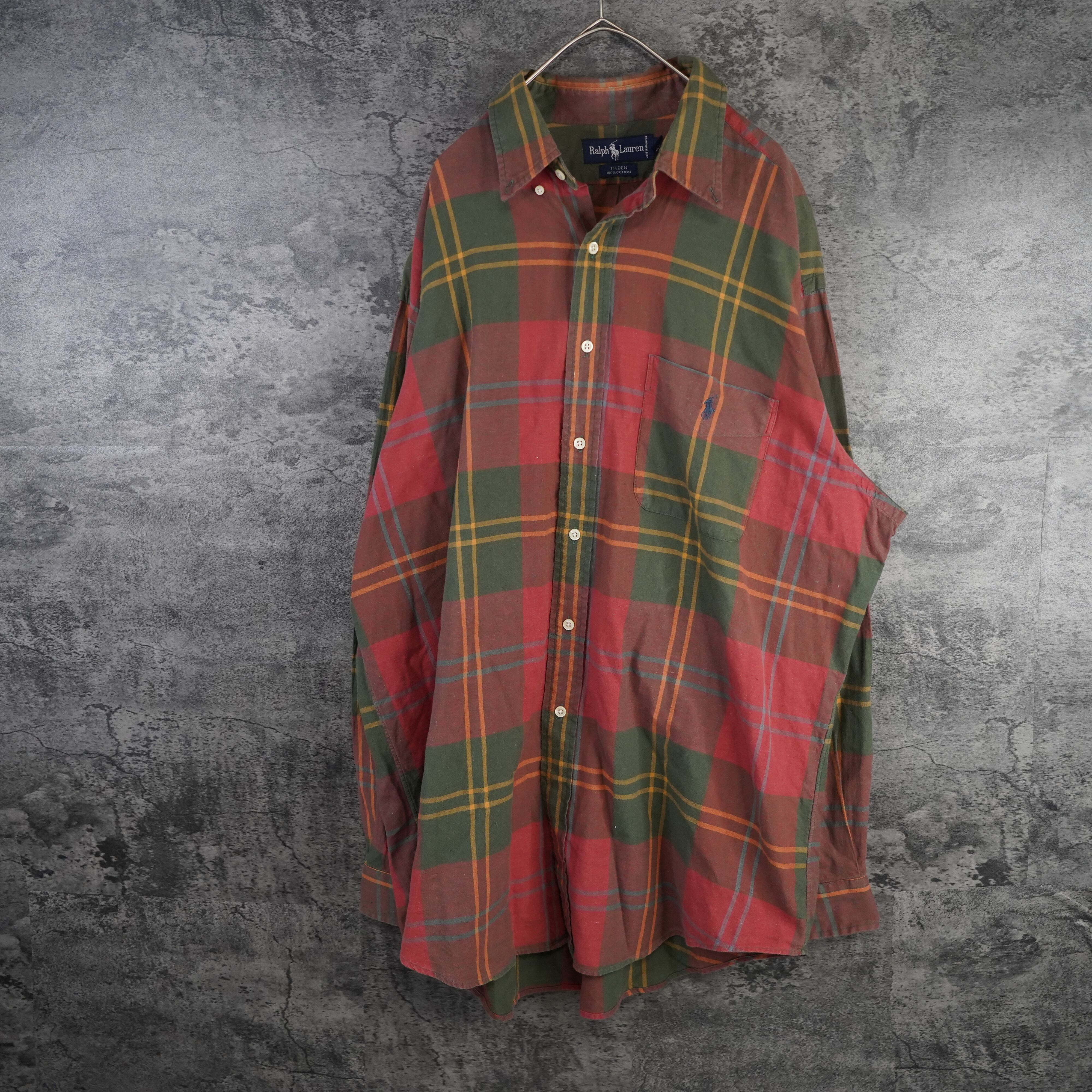 90's Ralph Lauren ラルフローレン 長袖チェック柄シャツ Lサイズ 緑/ワインレッド
